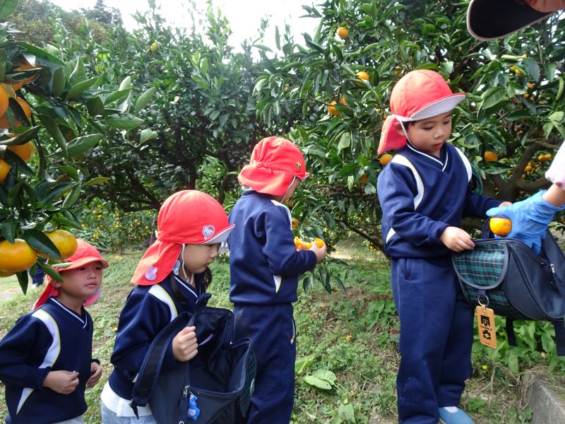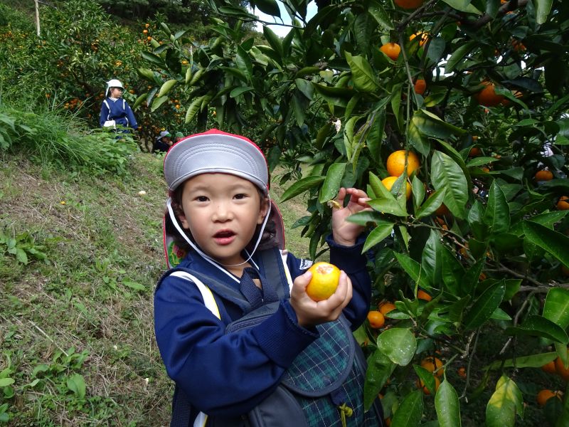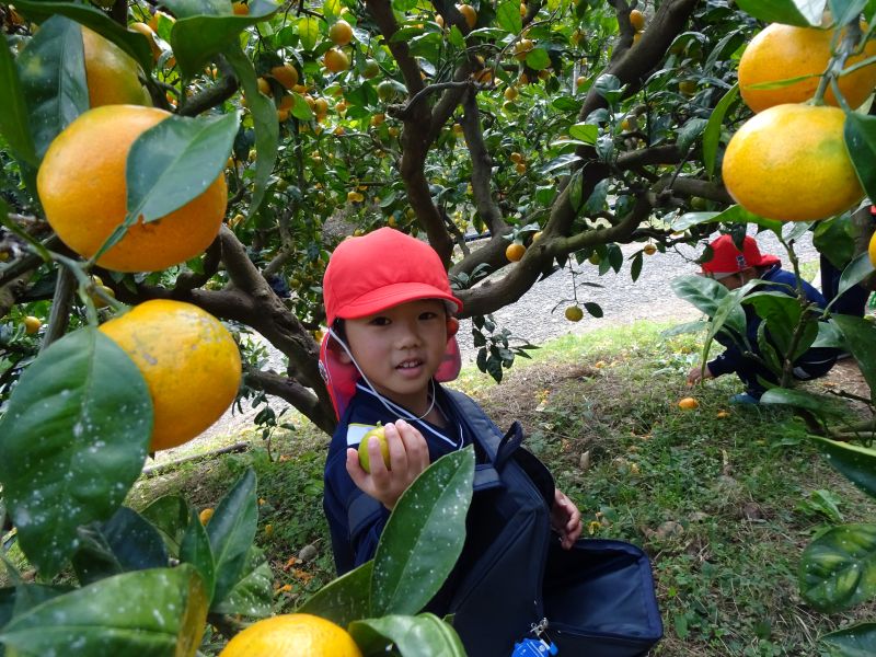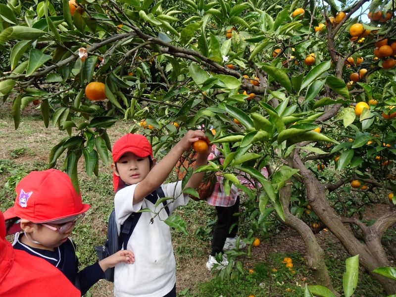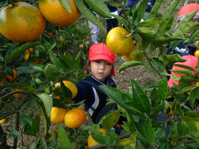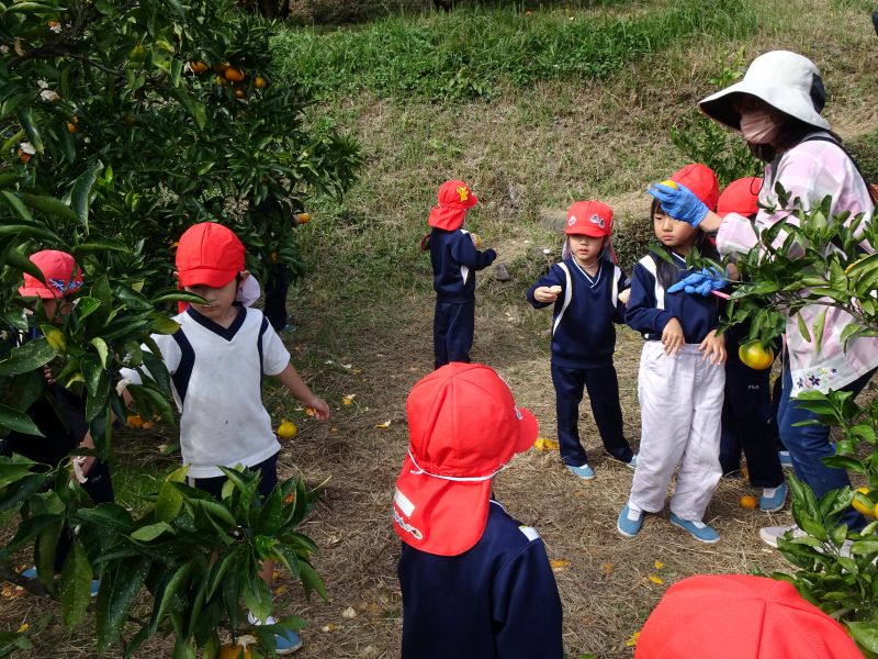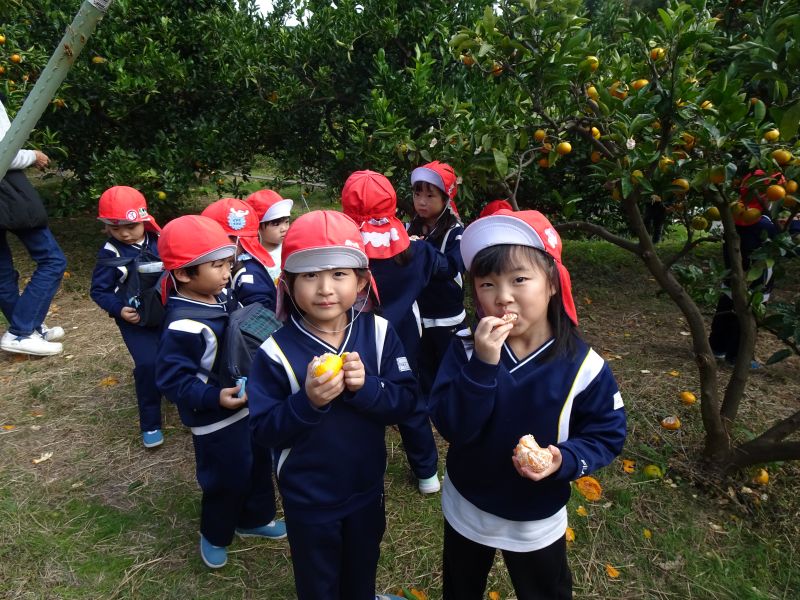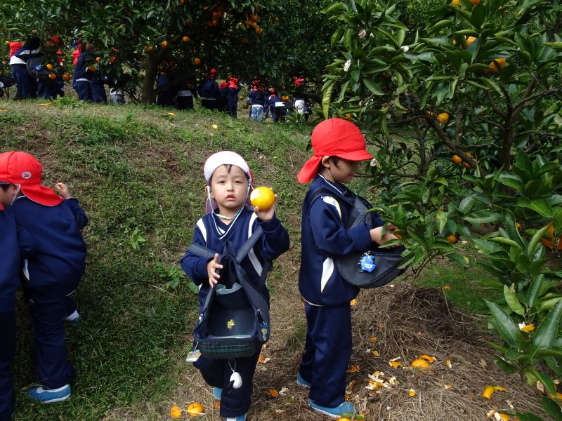 年中組のみかん狩りの様子です。おいしいみかんをたくさん食べて、楽しかったね!