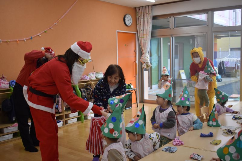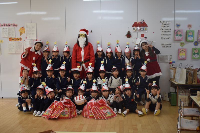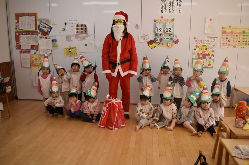 園内クリスマス会を行いました。幼稚園のサンタクロースからのプレゼントはなんだったかな?