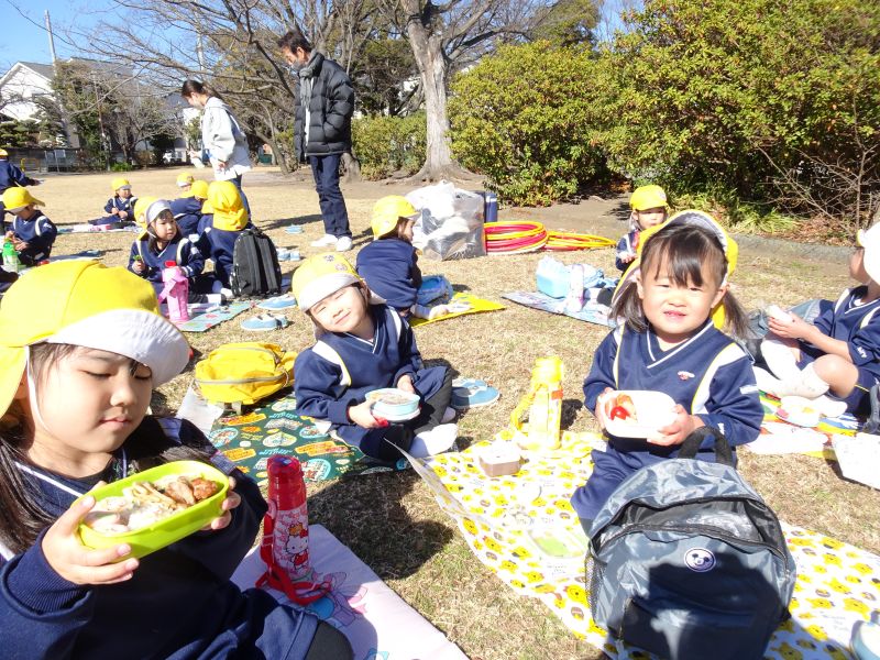 年少組は園外保育でたこ公園へ遊びに行きました!お天気の良くて、お弁当もおいしくて、楽しかったね。