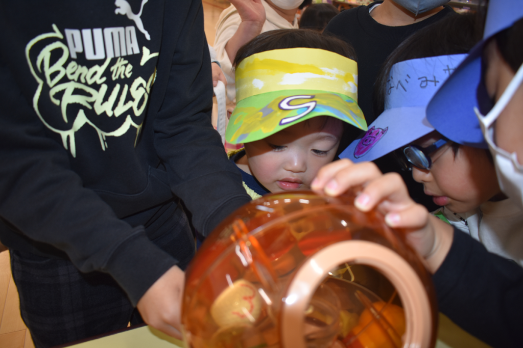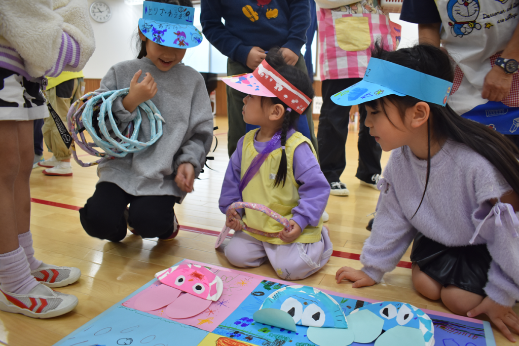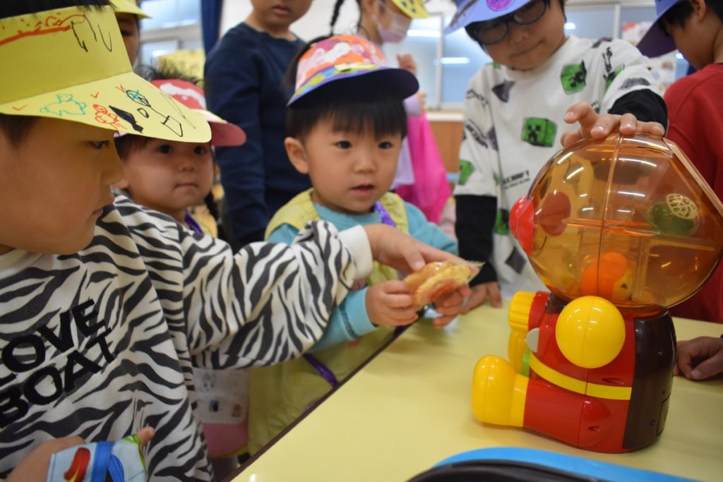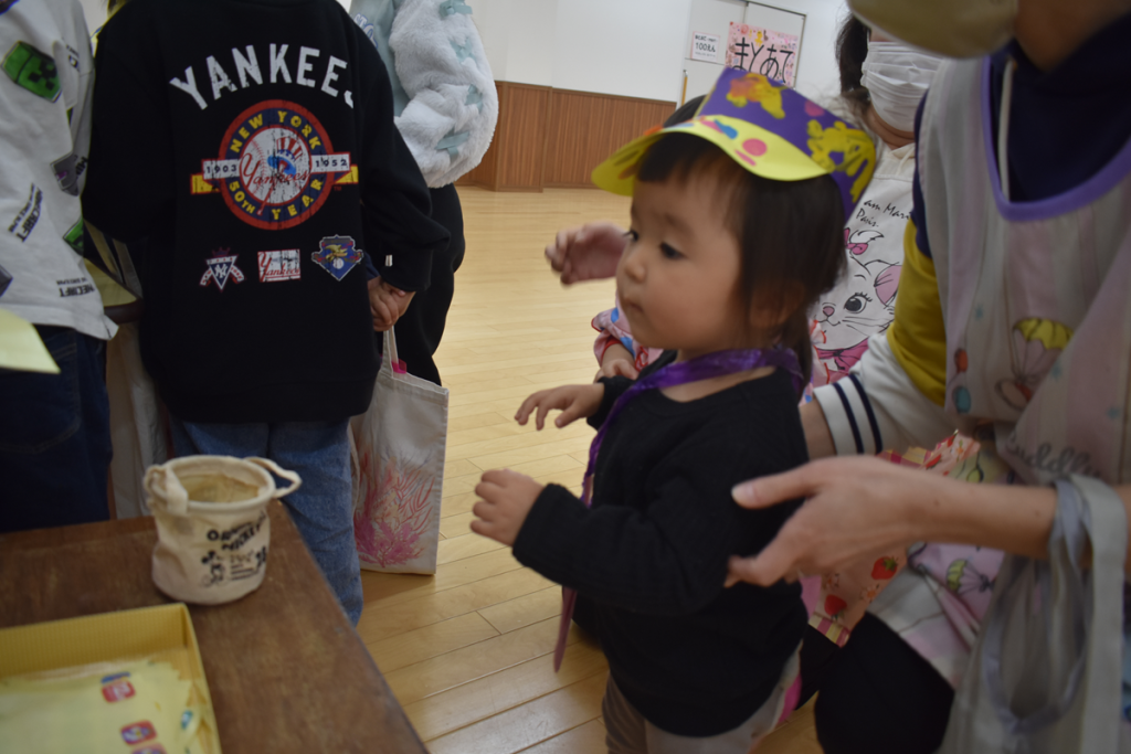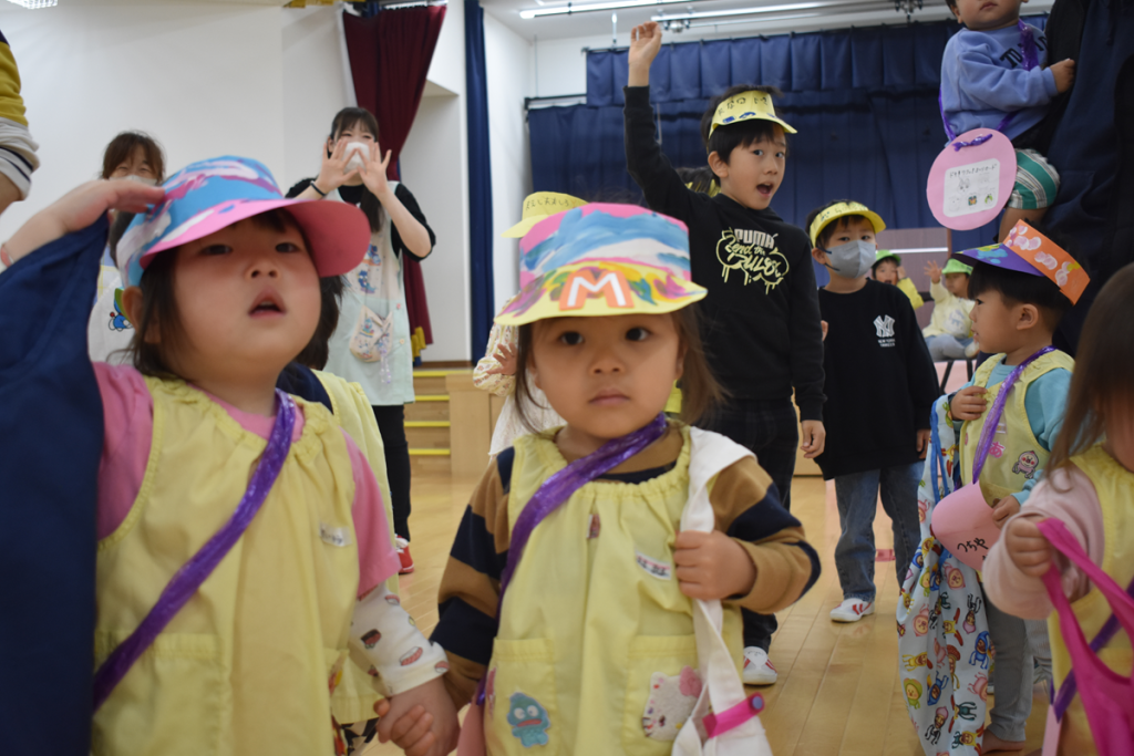 たまご ぽにょ 楽しいドキワクまつり🌞 2026.03.10 その他 年長組のおにいさん おねえさんと一緒に、ドキワクまつりに参加しました♡ サンバイザーを付けて出発!! ドキドキしながらのお買い物でした♪
