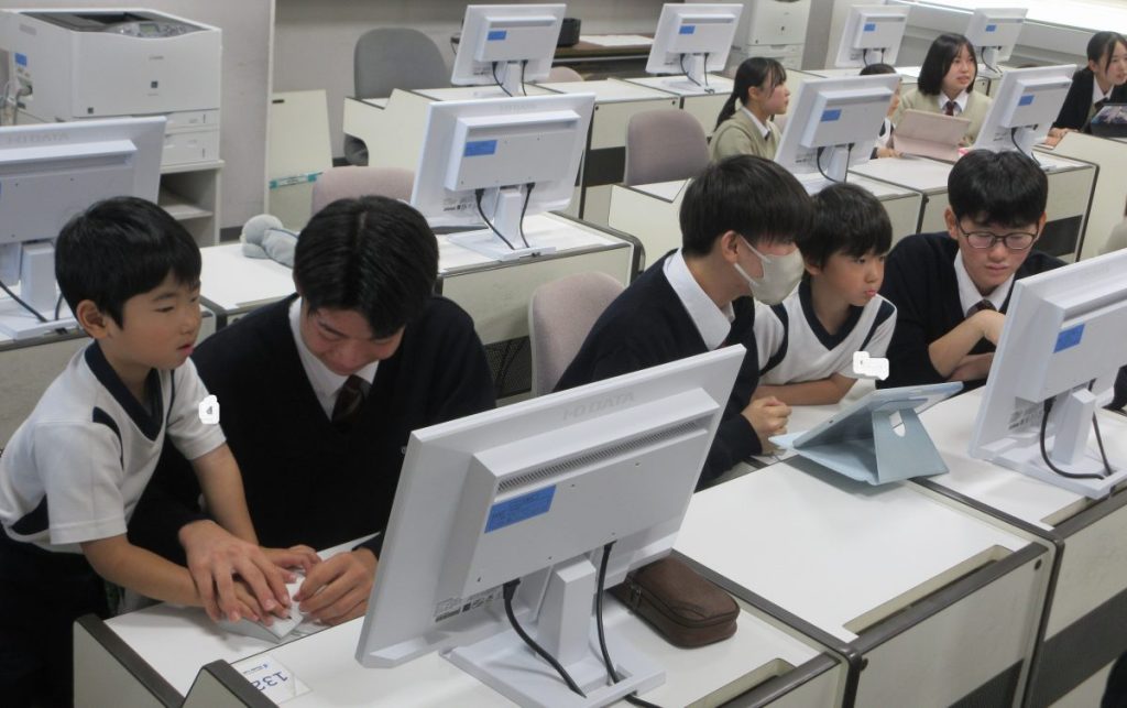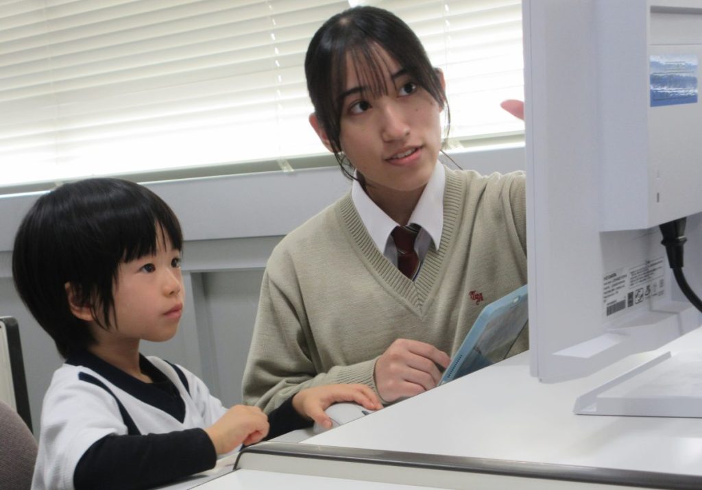 年中組さんは、二日間かけて同法人桐陽高校にパソコン教室に行ってきました。沢山のパソコンが置いてある教室で、お兄さんお姉さんに手助けしていただきながら