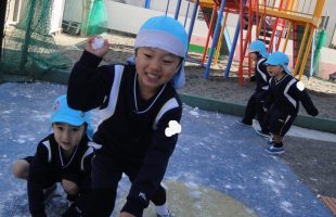 先日の大雪には大人はあたふた!子供たちは登園するなり雪を見つけ大喜び!先生が雪を…
